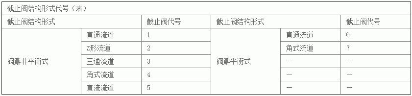 截止閥、節(jié)流閥柱塞閥結(jié)構(gòu)形式代號: